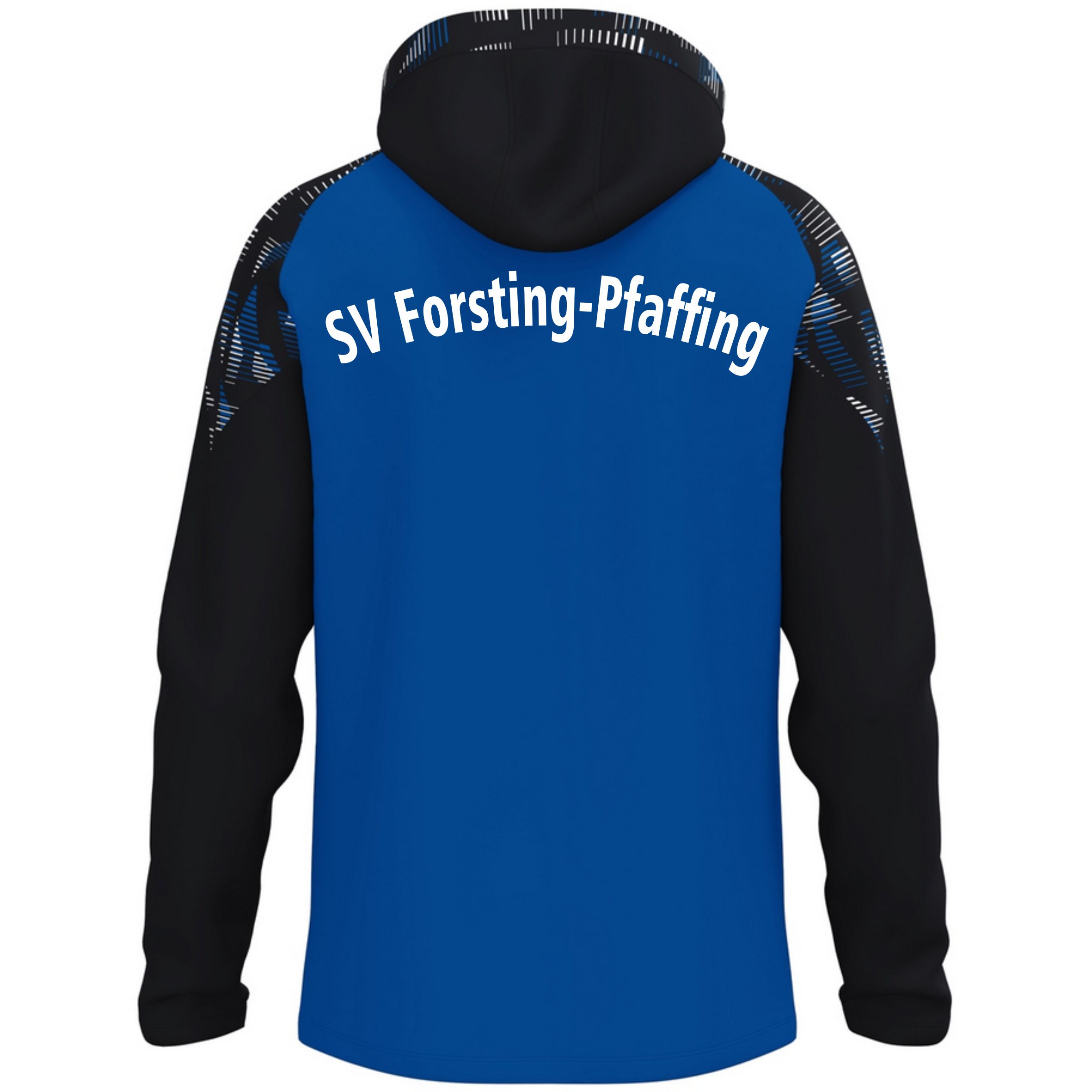 Kapuzenjacke mit Vereinslogo auf der Brust und Vereinsname am Rücken. Auf Wunsch mit Initialen.